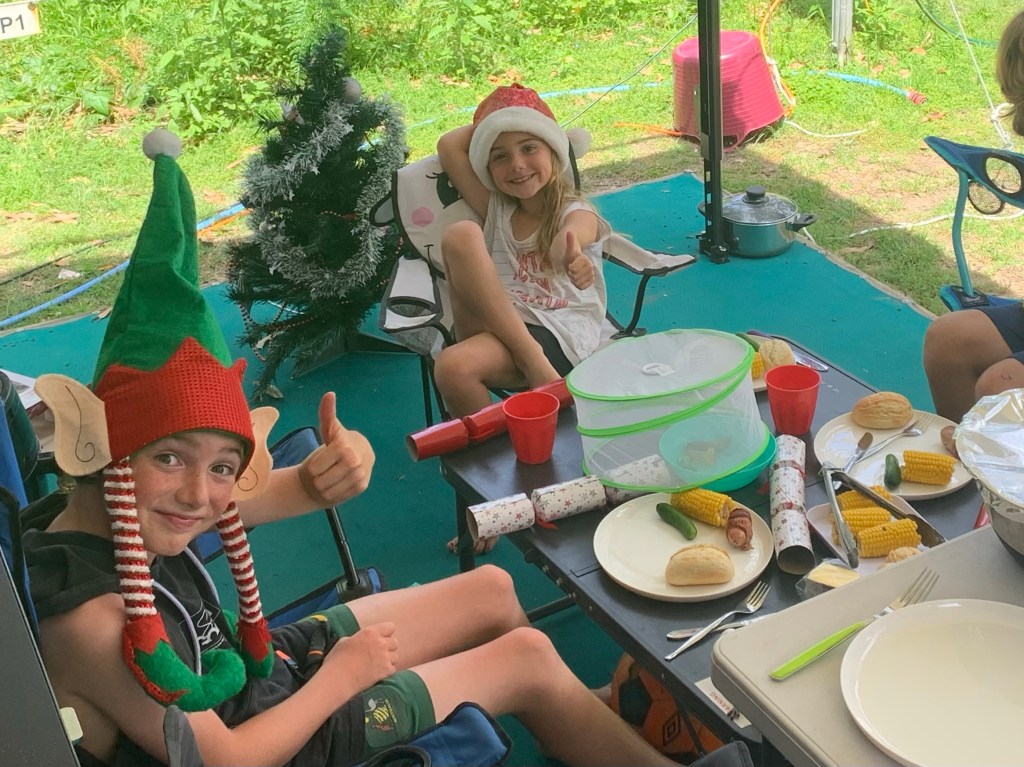 The celebrations started early, with a roast beef feast on Christmas Eve and open air dining and drinks with the camping neighbours. After days of rain, we were thankfully blessed with a clear evening so preparations of the runway for Santa’s sleigh could commence. The Big 4 caravan park at South Durras really does live up to its name of a bush camp. It’s a super small caravan park and we are nestled into a lovely little corner surrounded by bush and a handful of other caravans. With the Eglin family camped opposite, we have a little neighbourhood feel and kids running between our camp set ups – perfect!