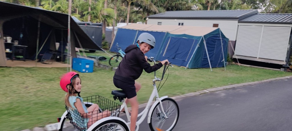 The camp site at Wairo Beach is certainly unique. The site has lots of small permanent cabins – all super lovely and it’s clear people who own them spend a lot of time there. The top end of the site has a row of cabins which can be rented for holiday stays – all old style buildings like ‘the village bakery’ or ‘the post office’. There is even the local servo with an old fuel pump outside. They are super quirky and look really comfortable for a short get away. As expected, the site had lots of groups camping together for NY celebrations. It was lovely to have the Taylor family only a short walk away on the camp site and the kids had lots of fun running between the two or acting as delivery drivers with Auntie Leanne’s bike!
