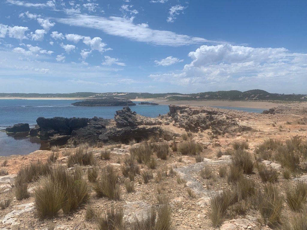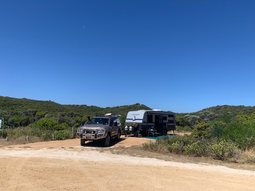 We managed to get a space at the Southend Campsite Bush site. Even though it is technically still ‘high season’, we seem to be doing ok at getting into places with only a day or two notice. It seems there are lots of cancellations (likely covid related) and I guess many still choosing not to travel. Southend was a great base for 3 nights and a chance to explore the local area. One of the highlights has to be a drive to Beachport and an amazing bay called Salmon Bay. The water was the most incredible blue colour.