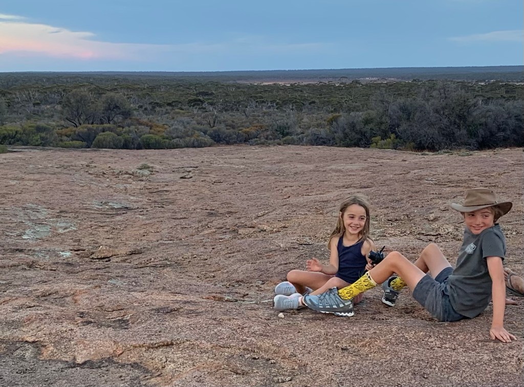 Day three we covered around 350km to take us to Newman Rock and apparently a watering hole! It turns out that the Nullarbor is home to over 100,000 wild camels which were first brought here in the 19th century by early settlers for transport whilst building the railways. They figured they would eventually die out but the camels thrived and are now the largest population of feral camel in the world! Unfortunately for us, the watering hole was dry so we didn’t actually see any but we did find prints in the sand and fresh camel poo so clearly they are around. Fun place to camp and opportunity for a camp fire and set up a tree swing – always fun.