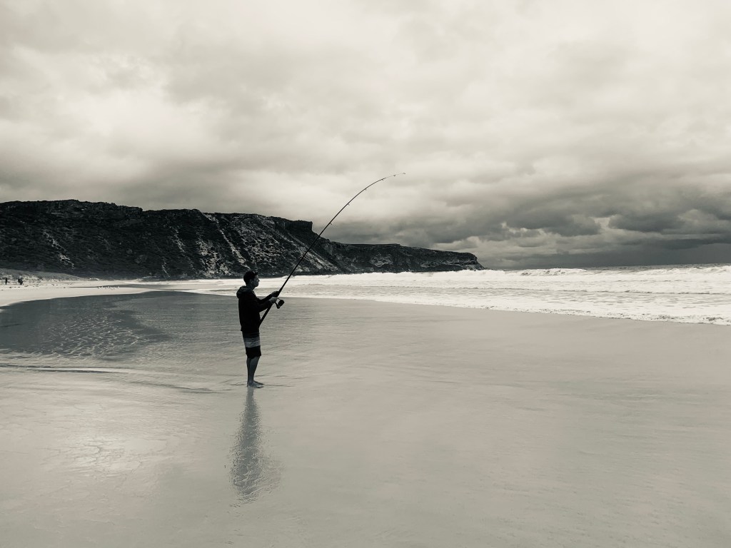 We attempted to go fishing but it turns out that fishing off a beach when the waves are big is pretty tricky. After a chat with some local aboriginal families, Andy learned all about the best tide to fish and how to look for the right spot. Learning from the locals.