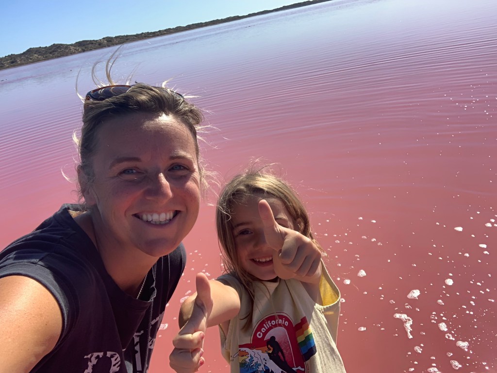 Just south of Kalbarri, we stopped at the Pink Lake to see if it really was as pink as the travel brochure suggested or if that was just photoshop. Turns out it is pretty pink!