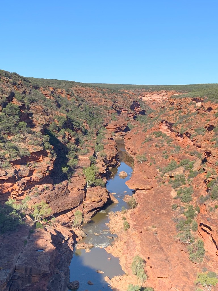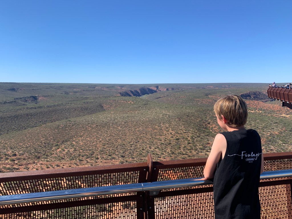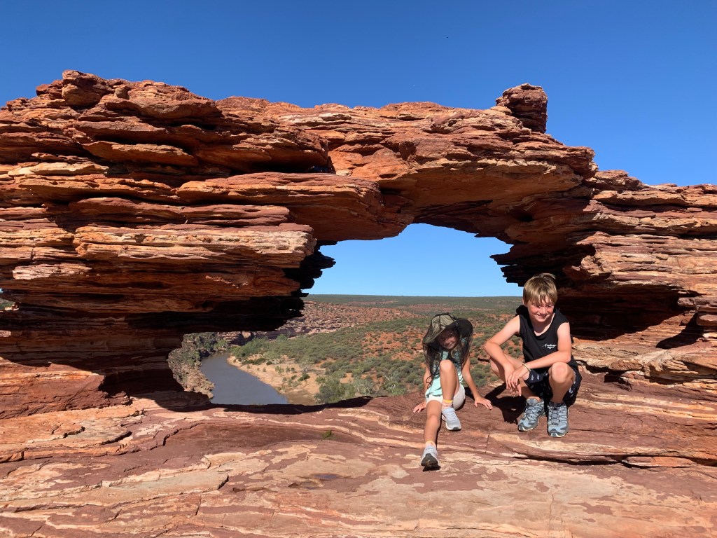 It wouldn’t be a trip to Kalbarri if we didn’t go to the iconic natures window look out. We last came here back in 2010 and, at the time, the water level in the river was really low. It was amazing to see the water level so high and, consequently, the area around looking so green. I wonder what the water level will be like the next time they come here?