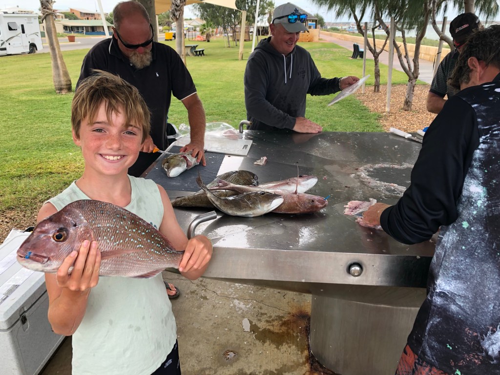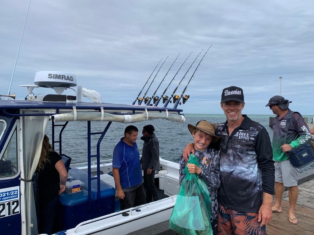 First morning in Denham and I had booked a fishing charter for the boys. 8am, two very excited boys were ready and waiting on the jetty in Denham for their first fishing charter…