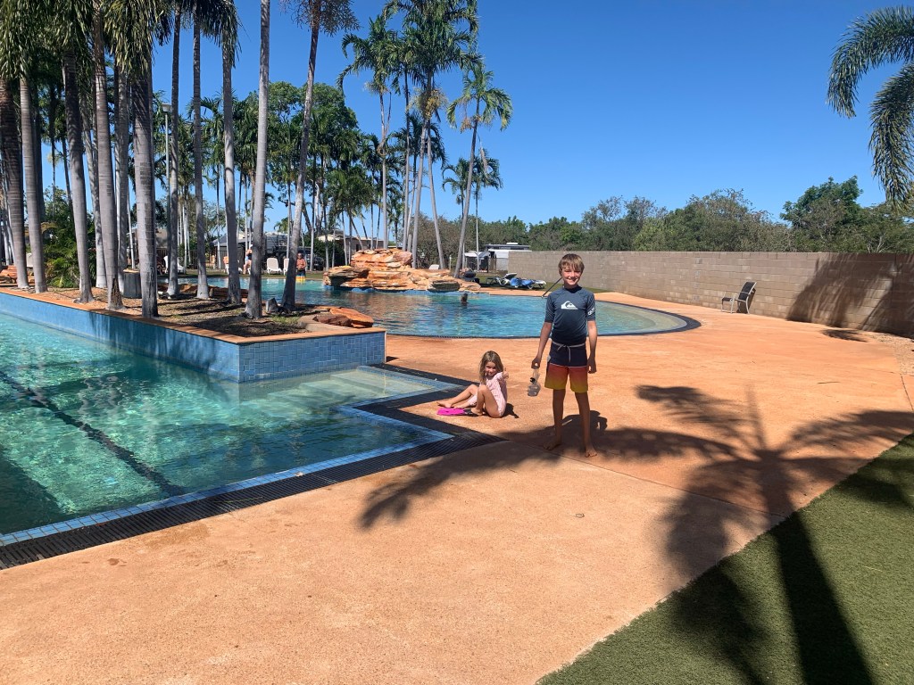 Broome is a well known tourist hot spot on the far north coast of WA and we totally visited the area in the peak of the dry season. The only real options for camping are the caravan parks and the ones in town or by the beach were either fully booked or just never bothered answering the phones (clearly because they are fully booked this time of year!). After a bit of a call around, we found a park about 5km out of town which had space for four nights for us. The pool at the caravan park was like something from a holiday resort, clearly a winner with the kids and a nice option to cool off in the constant 32 degree days Broome seems to enjoy this time of year (hence the crowds as it’s winter everywhere else in Australia!).