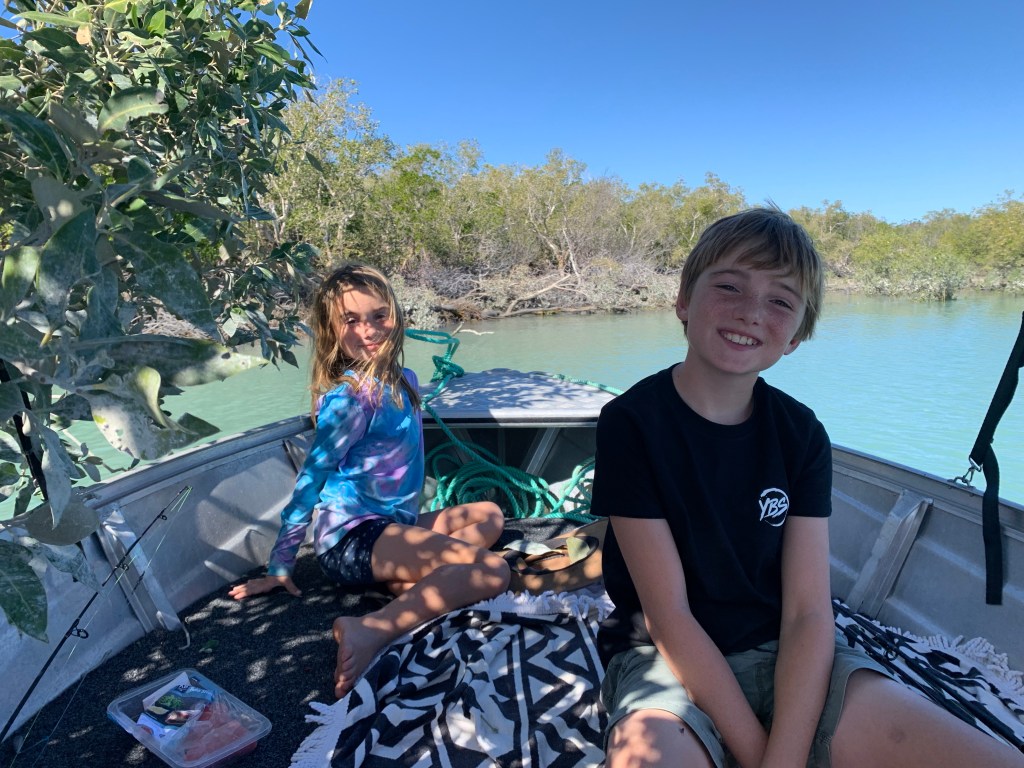 Our second day in Broome was Fin’s 10th birthday – what an occasion! Double digits for the (not so) little man. Despite not having many places in a van to hide things, we did pretty well at keeping his pressies a surprise and the best surprise of all was saved for last as we had hired a small boat for the day.
