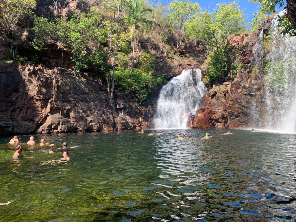 Walk through the Lost City done and we set off down a 4WD track to find Tjaynera Falls. Bring 9km off the main road, with a pretty deep river crossing on the way, the car park at Tjaynera was certainly quieter than everywhere else. A 2km walk from the car park took us through some pretty cool palms and a different type of feel to the ‘rainforest feel’ at Florence Falls. Once again, we were rewarded with an impressive waterfall and sing swimming hole. I think this one may have been our favourite of the Litchfield sights.