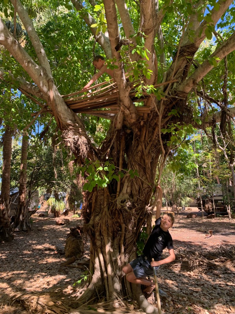Building dens, making spears out of palm fronds, outdoor craft, creating a platform for a base in a tree and building a fire… all fun memories the kids will take away from Bitter Springs.