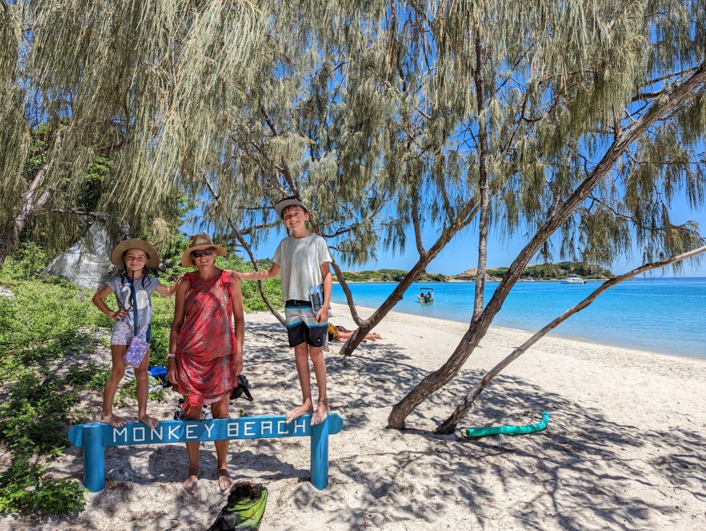 We took a walk over to Monkey Beach. I don’t think it was actually that far but it was hot and seemed to involve a lot of uphill so felt like a long way and we were all pleased to get in the water when we got there.
