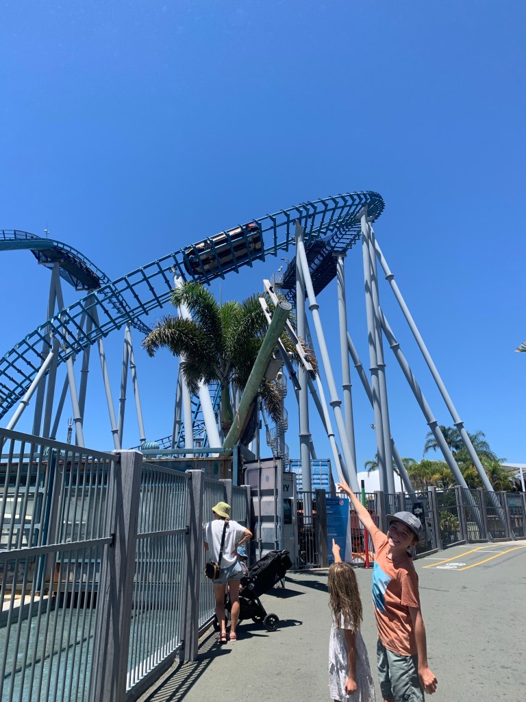 First on our list was Movie World. To be honest, we were underwhelmed and lasted all of about 45 minutes. Unsurprisingly it was super busy but we were surprised that there didn’t seem to be that much for us to do. The wait times for the rides were insane, in some cases up to 2 hours, and the height limitations on the rides also meant that the kids couldn’t really go on a number of the rides and the things they could go on were either closed or huge wait times. The final straw came when they even wanted to charge $50 to have photos with the movie characters. I guess if you are massive movie fans (and super patient with waiting in line) then perhaps you would find more fun things to do? Anyway… we decided Movie World wasn’t for us, cut our losses and hit the water slides at Wet n’ Wild which was a much better plan!