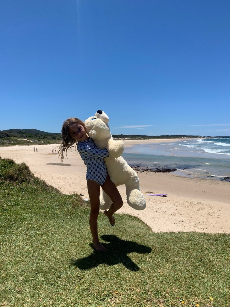 We finally spotted a humpback whale and calf – our first sighting of the trip! We all enjoyed lots of water time with kiting, surfing and snorkelling on offer at the surrounding beaches and Brooms Head was a super fun spot for little miss K to celebrate turning 7! I think the favourite pressie was the giant polar bear we managed to secretly buy for her from Sea World and keep hidden for a few days – there are only so many places you can hide things in a caravan, we especially when they are almost as big as Kiera!
