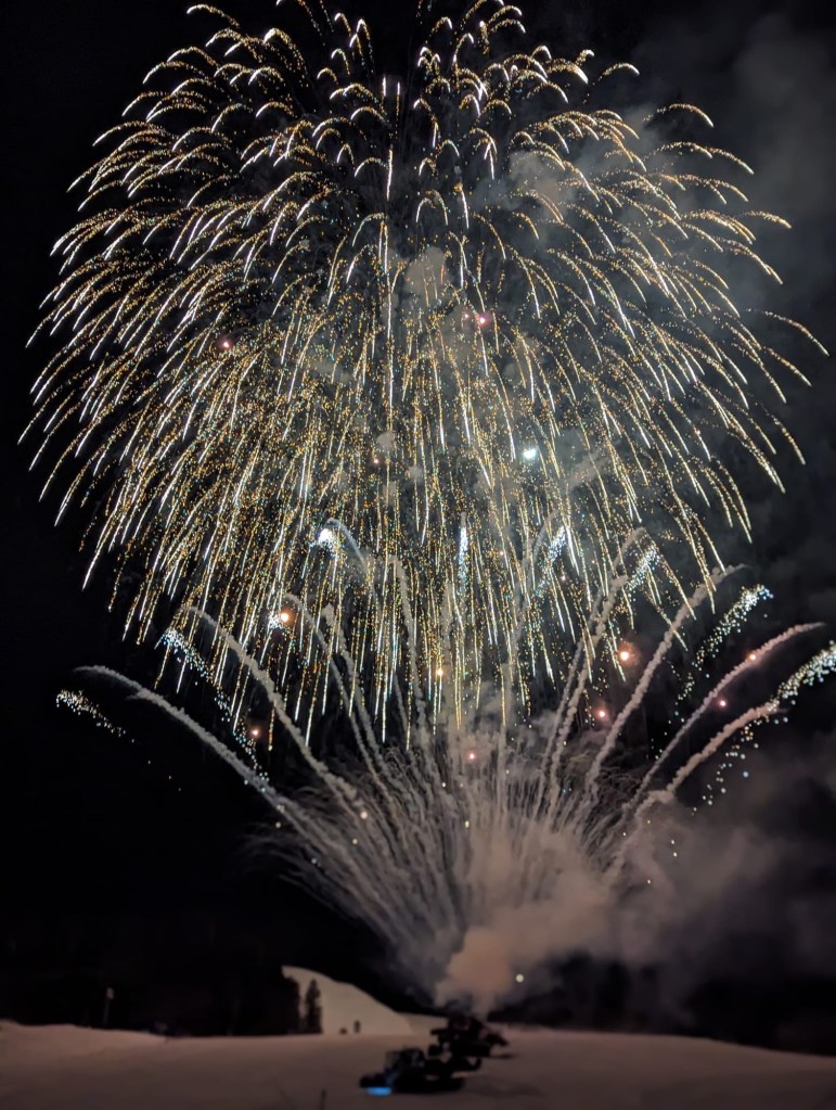 I have to admit, it was quite cool to see 50+ ski and snowboard instructors, riding down the mountain in the dark carrying fire torches. The last rider carries a torch to light a large bonfire, marking the start of the fire festival. Kiera wasn’t convinced it was ‘safe’ standing so close to a bonfire (clearly not had the pleasure of growing up in the UK with bonfire night as part of her childhood memories!) so we left the boys to enjoy the fireworks and a pretty amazing end to our first day on the snow.