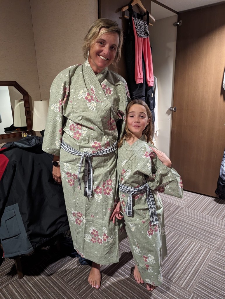 Not even fans of a hot bath at home, the boys declined the idea of the Onsen so it was left to K and I to work out the way to ‘Onsen’. Thankfully there isn’t much to it (you can even Google the do’s and don’ts) and the hotel even kindly supplies Kimono’s in your room (probably as much for the amusement of hotel staff to see the tourists wandering around the hotel without a clue how to wear said Kimono… myself included as it turns out I wrapped it the wrong way!)